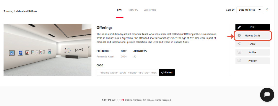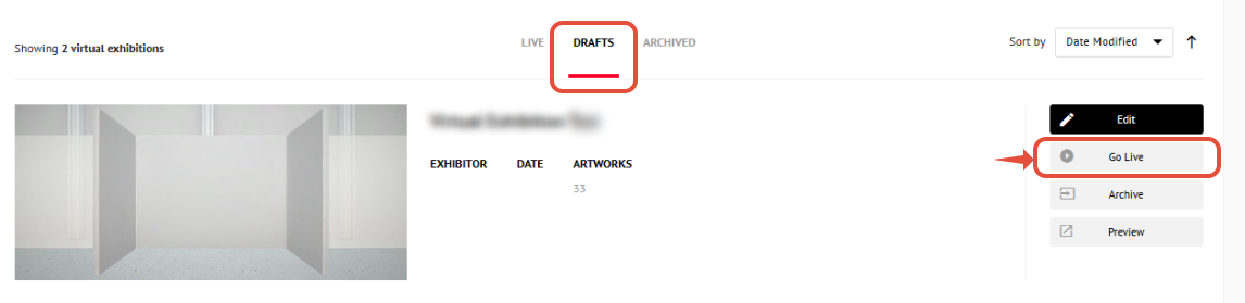 - Drafts allow you to manage your Live exhibitions more efficiently without losing any of your curatorial work.