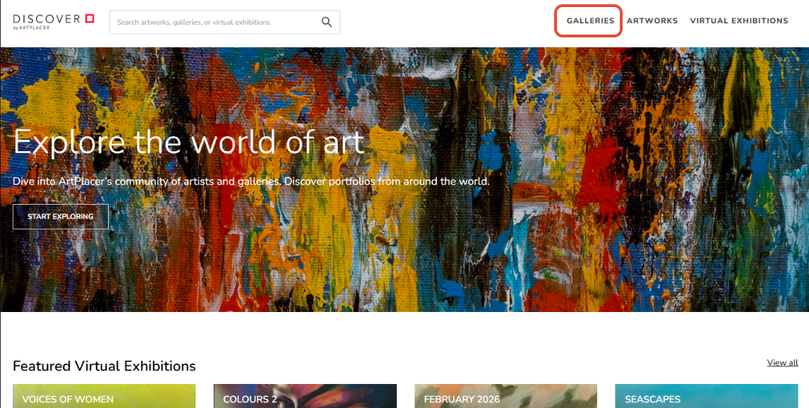Click or tap on a gallery to open its Profile, where they can read a description, browse through Artworks, and visit Virtual Exhibitions.