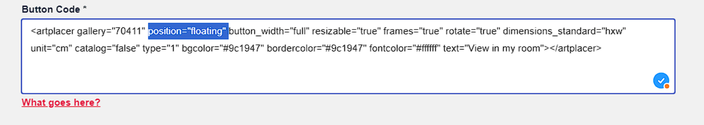 • If you need to check on this, go to the Widget Button settings at Shopify dashboard → Apps → ArtPlacer → Widget → Button code: