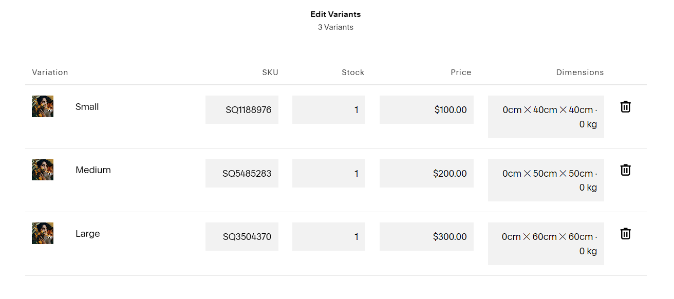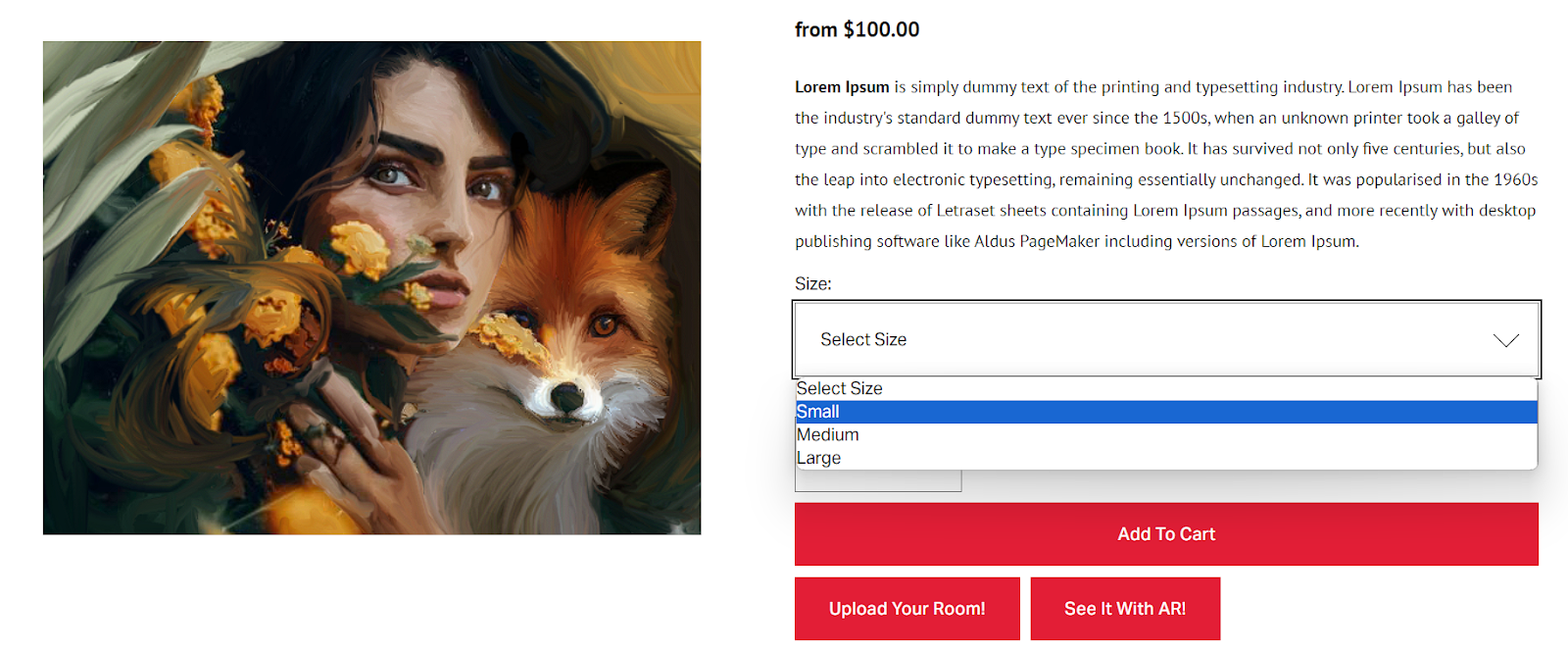 • If you’re planning to implement Widgets on a Product Page (Shop page), the products (hence the Artworks) must be previously listed on your Squarespace inventory with the fulfillment shipping dimensions (width & height) filled in. Learn how to properly do this, here.